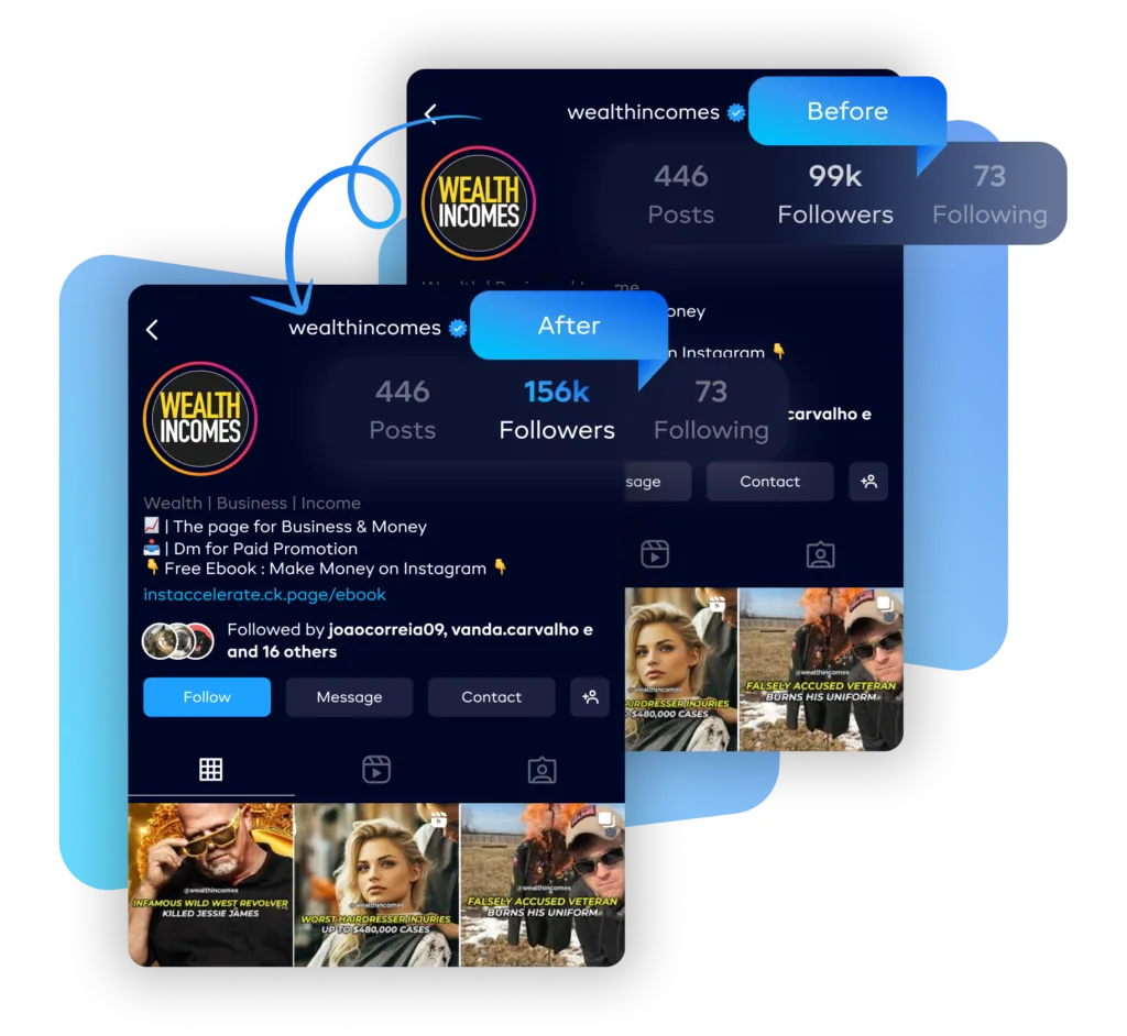 Within less than a month, your competitors’ followers will start following you. Increase exposure, likes, comments, and reel views, turning them into customers for your business.